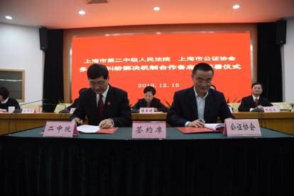 昨天(12月15日),上海市第二中级人民法院与上海市公证协会、上海市东方公证处签署合作备忘录与对接协议,将多元化解决机制扩大到家事、房产、损害赔偿、民间借贷类等民商事案件,进一步促进公证服务与诉讼服务的有机衔接,旨在满足坊间的多元司法需求,实现司法服务的“全方位、零距离、无障碍”。