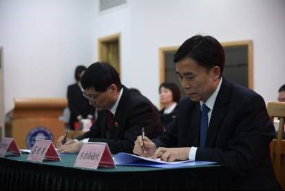上海市二中院副院长宋学东与上海市公证协会会长黄群签署了合作备忘录
