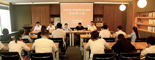 7月2日下午,普陀公证处召开全处大会,传达全国公证工作电视电话会议精神,部署今后一段时期贯彻落实措施。普陀区司法局张蓉副局长、律公科负责同志和公证管理专职干部等出席会议。