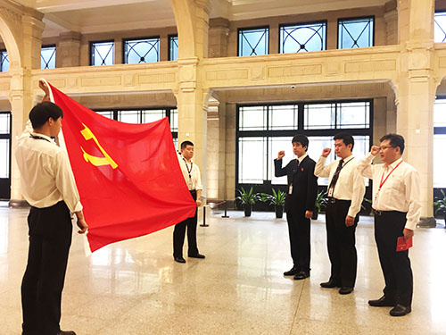 参观前,在处党委副书记、纪委书记倪鹏飞同志的带领下,2名预备党员举起右手,紧握拳头,庄严宣誓“我志愿加入中国共产党……”。铮铮誓言既是对党的97周年的纪念,也是对在场党员一次深刻的党性教育。