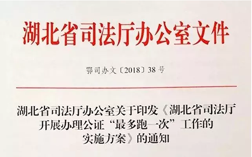 7月6日,湖北省司法厅印发《湖北省司法厅开展办理公证“最多跑一次”工作的实施方案》,规定42类公证“最多跑一次”,并建立一次性告知制,推出“谁接单谁负责”“限时办结”的便民利民工作举措,保障“最多跑一次”落实到位。