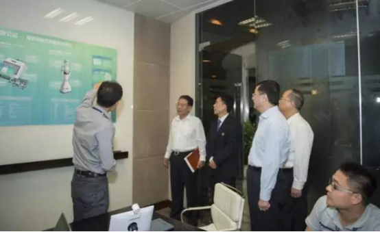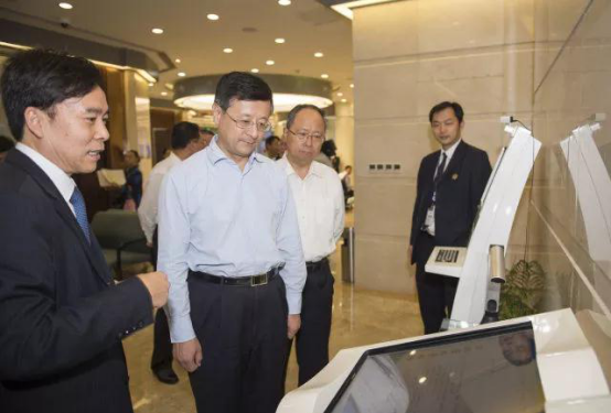 在东方公证处的“智慧公证”研发基地,陈寅听取了公证处党委书记、代理主任王兴和对“智慧公证”智能装备及智能办证系统推进进度的介绍。